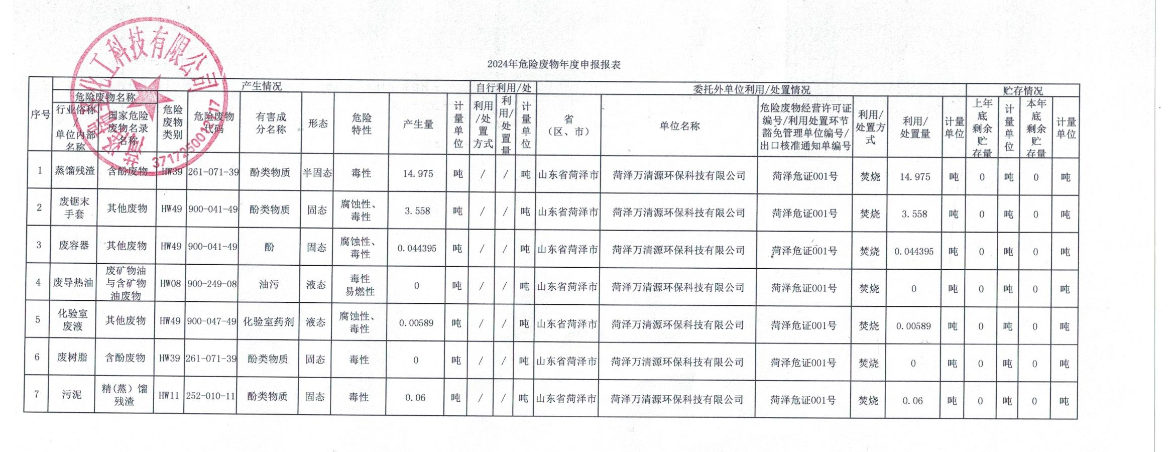 危險廢物申報報告表